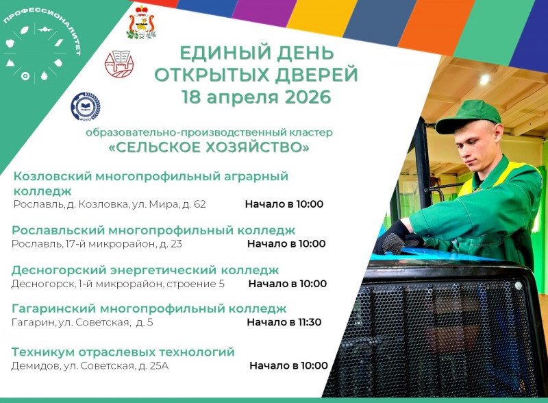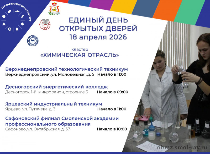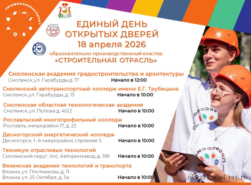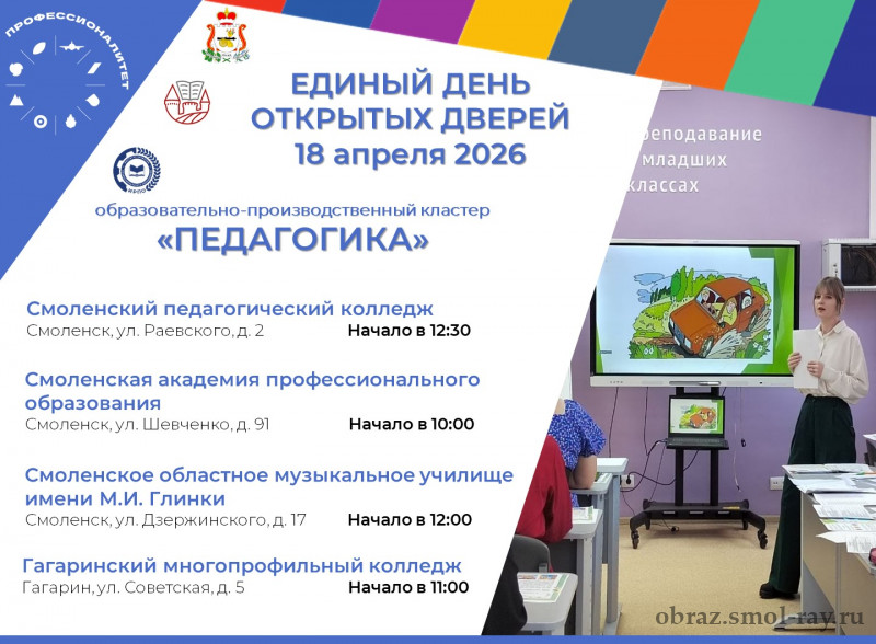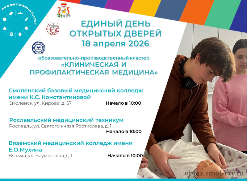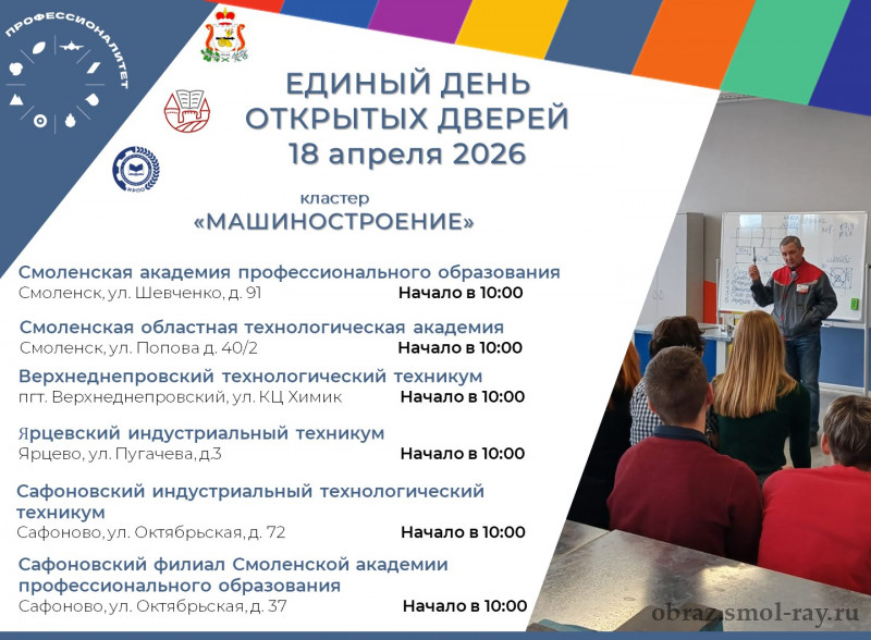 18 апреля 2026 года в Смоленской области пройдет Единый день открытых дверей «Профессионалитета».