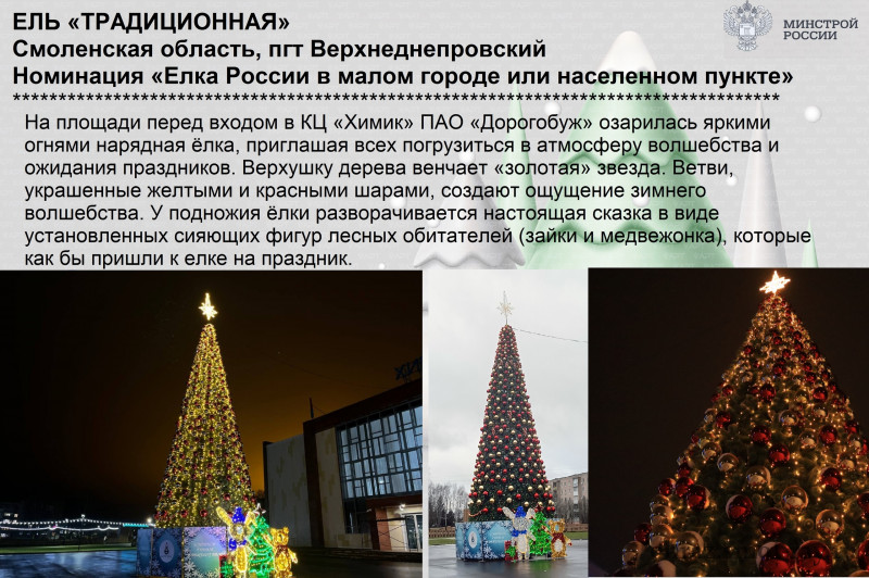 Ель «Традиционная» в посёлке Верхнеднепровском Дорогобужского округа (номинация «Ёлка России в малом городе или населённом пункте) — clck.ru/3RE6b9