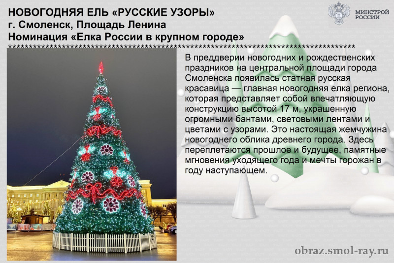 Ель «Русские узоры» на площади Ленина в Смоленске (номинация «Ёлка России в крупном городе») — clck.ru/3RDrZ9